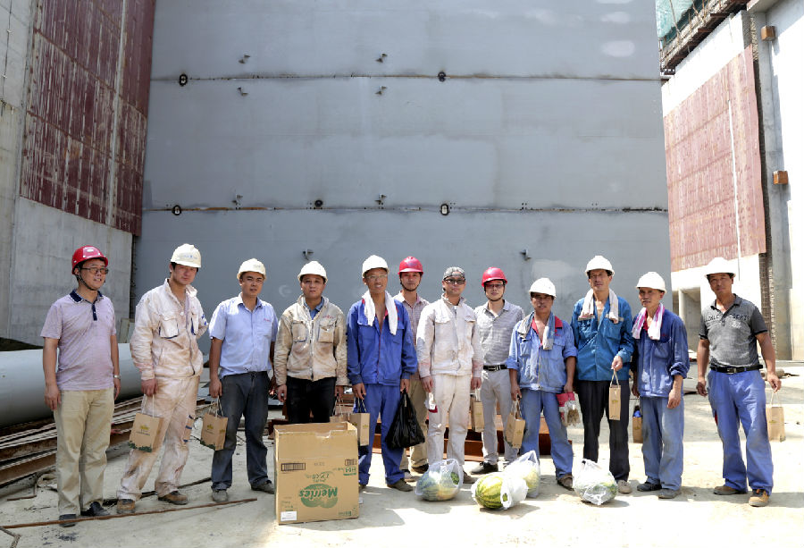7月25日,水機公司黨委書記田建京、工會主席黃統(tǒng)及相關(guān)項目負責(zé)人一行8人前往芒稻閘、邵仙閘項目施工現(xiàn)場開展 “送清涼”活動,慰問戰(zhàn)斗在高溫酷暑下的一線員工,送去防暑降溫用品、西瓜和慰問金,囑托現(xiàn)場員工注意施工安全,合理調(diào)整作息時間,采取必要的防暑降溫措施,團結(jié)一心,攻堅克難,確保優(yōu)質(zhì)高效地完成項目施工任務(wù)。