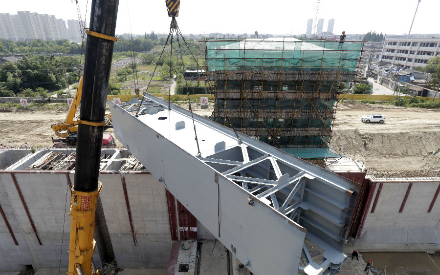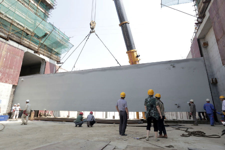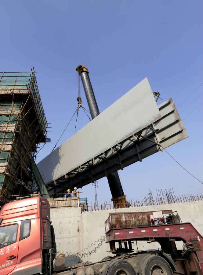 6月17日,由水機公司承建的芒稻閘項目上閘首閘門吊裝成功。閘門分兩片,單片重70噸,運輸、吊裝難度非常大,為此,水機公司組織精兵強將,認真查看運輸線路、吊裝位置,制定切實可行的預(yù)案。吊裝現(xiàn)場,隨著指揮哨聲的響起,兩輛運送閘門的大型平板汽車駛?cè)胫付ㄎ恢茫慌_500噸和一臺200噸的汽車吊緊密配合將閘門起吊、進行空中轉(zhuǎn)體、側(cè)向移位、斜插門庫就位一氣呵成,猶如體操運動員精準完美的表演。目前,下閘首閘門已完成制作進入防腐階段。